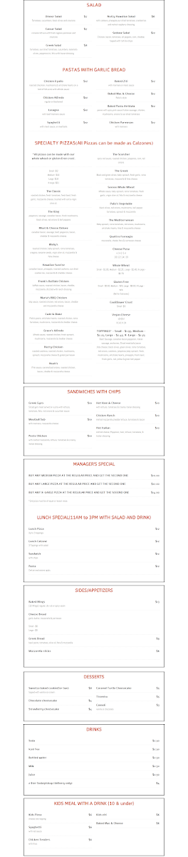Beyond pizza, they excel in comforting pasta dishes like the Chicken Parmesan and the rich Baked Pasta Arrabiata, crafted using fresh, in-house ingredients. Exceptional customer service complements the delicious food—many patrons have praised the staff's friendliness and attentiveness. Whether you're celebrating a special occasion or enjoying a family meal, Palio's Pizza Cafe provides an inviting atmosphere and a menu that promises to impress.